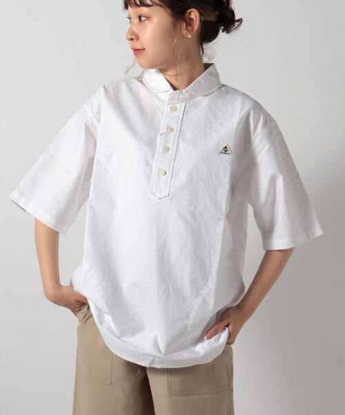 ヨーロッパワークウェアの特徴である丸襟のシルエットをシャツに落とし込んだ1枚。 ユーロワークブランドらしさを表現したワイドシルエットのプルオーバーシャツです。 サイドにポケットがあるのも嬉しいポイント。 可愛らしい馬のロゴワッペンがアクセントになっています。男女問わず着ていただけるユニセックスアイテムです。 ■素材 生地はハリのある丈夫なOX FORD(オックスフォード)を使用。 着込んでいく程に風合いも楽しめます。 ■コーディネート ワークテイストを生かしたベイカーパンツやチノとは王道の組み合わせです。夏は子供ぽさが出がちなハーフパンツと合わせてもバランス良く収まります。襟のボタンはお好みで開けてインナーの色を見せるのもあり。 デザイン性の高いアイテムなのでこれ1枚でコーディネートが完成するのも嬉しい。 【生地感】 -------------------------- 透け感:なし 裏地:なし 伸縮性:適度にあり 光沢感:なし -------------------------- 【GEVACO/ゲバコ】 1960年代にベルギーにて創業した老舗ワークウエアメーカー。 馬がオーバーオールを着た可愛いブランドアイコンと、馬に引っ張られても破けないワークウェアを製造するメーカーとして有名になりました。 創業当初はその丈夫さを買われ、ベルギー軍用の軍服として採用された実績があります。本国では1990年代にブランドは消滅しました。 2021年、本国のブランドとの繋がりはありませんが、日本にて過去の良きテイストを継承しつつデザイン・ディティールを現代風にアレンジし、新たな“GEVACO”としてスタートしました。(商願2020-44488) ※店頭及び屋外での撮影画像は、光の当たり具合で色味が違って見える場合があります。商品の色味は、スタジオ撮影の画像をご参照下さい。 ※商品画像に関しては出来る限り忠実に表示出来るよう努めておりますが、お客様がご利用のモニターの設定及び特性により、実際の商品と比較し色味に若干の誤差が生じる場合があります。 ※お取扱い上のご注意 アテンションタグを必ずご確認の上、着用又はお取り扱いください。 ◇商品のお気に入り登録◇ 【お気に入りに登録】を是非ご活用ください。 再入荷の通知や、ラスト1点の通知、セールの通知がいち早く届きます。 ◇ブランドのお気に入り登録◇ 新商品や再入荷など、いち早くブランドのお得情報が届きます。
