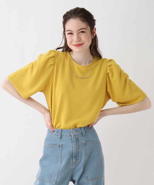 【デザイン】 表面がポコポコとした素材を使用したデザインカットソー。 今年トレンドのパワショルデザインをさりげなく取り入れました♪ シルバーカラーのネックレス付きが嬉しいお得アイテムです。 【生地感】 柔らかい風合いで肌触りが良く、軽い着用感です。 ※オフホワイト(003)・イエロー(032)はやや透け感があるため、インナーの着用をおすすめします。 【サイズ】 小さいサイズSサイズあり。 ※01(S)サイズはWEB限定サイズです。 #CutieBlonde#Cutie#cutieblonde#cutie#キューティブロンド#キューティ#20代#30代 モデル情報:身長170cm B80 W59 H85 着用サイズ:02(M) 店舗へのお問い合わせ商品番号:256-12360 ●製品寸法: 01(S):着丈58cm B94cm 袖丈29cm 肩幅30cm 付属ネックレス全長55cm 付属ネックレスモチーフH2.5cm 付属ネックレスモチーフW9cm 02(M):着丈60cm B98cm 袖丈30cm 肩幅31cm 付属ネックレス全長55cm 付属ネックレスモチーフH2.5cm 付属ネックレスモチーフW9cm 03(L):着丈62cm B102cm 袖丈31cm 肩幅32cm 付属ネックレス全長55cm 付属ネックレスモチーフH2.5cm 付属ネックレスモチーフW9cm 備考: