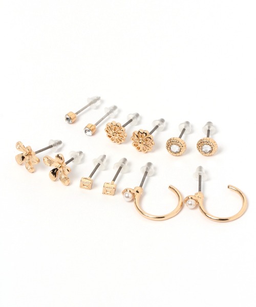 お得な6個セットのピアス。 カラーは少しエスニック調で夏の雰囲気に合うようなデザインに。 お好きな組み合わせをお楽しみいただけます。
