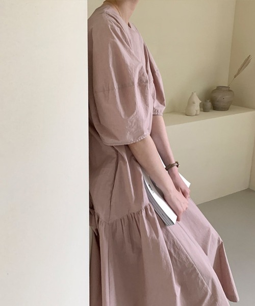 オーバーサイズとロング丈が大人のリラックススタイルにぴったりな両脇ギャザー入りワンピース。 ゆったりスリーブが気になる二の腕をカバーし、丸ネックでデコルテを美しく魅せてくれます。ゆったりとした着心地で旅行などにもおすすめの一枚。 春先から秋まで長く使えるのも嬉しいポイント。 空気を含んだリラックス感が、涼しげな印象と女性らしいニュアンスを演出してくれます。 韓国風ファッション