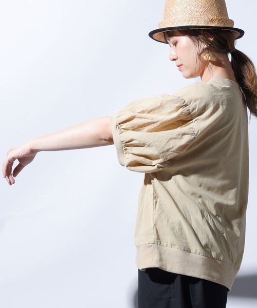 ボリューム袖がキレイ見え。心地よく着倒せるコットンTブラウス。 folkaからブラウストップスが登場。 一見シンプルなデザインのTシャツですが、ディティールや素材感にこだわって作りあげました。 まず、袖のボリューム感と丈感。 肩と袖口にギャザーを寄せ、きれいに見える袖のボリューム感にこだわりました。 程よいボリューム感で、毎日気負わずに使えるシルエットになりました。 そして、もう1つのこだわり、袖の丈感。 肘までの5分袖にすることで気になる二の腕を隠し、大人女子にぴったりの丈感に仕上げました。 袖にボリュームがあるので腕を華奢に演出してくれます。 襟ぐりと裾まわり、袖口には同色のリブを配置。 布帛できちんと感もあるのでオンオフ問わずに使えるのも嬉しいポイント。 シンプルなデザインで様々なコーデにお使いいただけます。 素材感にもこだわり、コットンでもヴィンテージコットンを使用。 リネンのようなシャリ感がありつつ、 柔らかく、肌触りが良いのが特徴です。 コットンなので通気性も良く、吸水性も抜群なので夏場でも汗でべたつかずさらりと着こなしていただけます。 夏場にはありがたい、洗濯もしやすいアイテムです。 【おすすめコーディネート】 シンプルなアイテムなので合わせるアイテムを選ばないのも嬉しいポイント。 おすすめのコーディネートはワイドパンツと合わせたコーディネート。 デニムパンツや古着のウォッシュデニムとの相性は抜群です。 サーカスパンツやリネンパンツ、サロペットとの組み合わせも トレンド感のあるコーデを演出できます。 パンツだけでなく、プリーツスカートやフレアスカート、 ワッシャースカートなど、スカートと組み合わせれば 女性らしいコーディネートが完成します。 同系統のカラーのパンツを穿いたセットアップの着こなしやワントーンコーデもおすすめです。 すっきりとしたシルエットなのでシアーシャツやバンドカラーシャツのインナー使いとしても。 キャミソールワンピのインナーにもお使いいただけるデザインです。 足元にはスポーツサンダル(スポサン)などとの 甘辛コーデがおすすめ。 スクエアトゥパンプスやトングサンダル、エスパドリーユなどの 夏らしいアイテムと組み合わせれば 爽やかなサマーコーデが完成します。 カンカン帽や麦わら帽子、ストローハットと組み合わせれば夏らしい着こなしに。 バケットハットやキャップ、メッシュキャップと組み合わせればカジュアルコーデが完成します。 カゴバッグやメルカドバッグと合わせればより夏気分を盛り上げる着こなしになります。 PUレザーやエコレザーのバッグ、帆布のトートバッグやランチトートなど 素材感のあるバッグとの組み合わせもおすすめです。 カラー展開もこだわりのカラーリング。 ベーシックなホワイト、ブラック、ベージュに加え、この春夏大注目のピンクを加えた4色展開。 ピンクも派手すぎない柔らかなピンクなので、 抵抗なく取り入れることができます。 大人女子のデイリーウエアに加えたい1枚。 ///folka(フォルカ)/// About… デニムの名産地、岡山。 そんな岡山で数々のデニムブランドの生産を手がけてきた工場によるブランド、folka。 良いものを長く愛用し、丁寧に暮らす。 そんな毎日の心遣いを大切にする大人の女性に向けたカジュアルブランドです。 使いやすく、着回しがきく。トレンドに左右されない。 頑張りすぎない、だけどどこかこなれ感のある日常着を提案します。