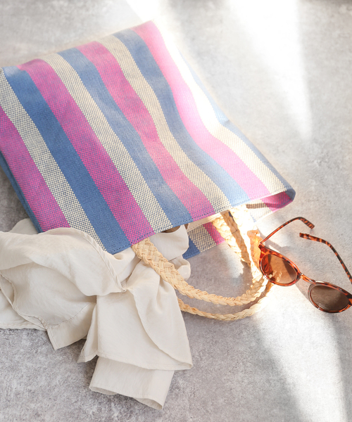 【2021SS】B.C STOCKマルチストライプの夏らしいトートが登場!ハンドル部分はラフィア素材で季節感満点。ペーパー素材なので、いつものコーデに合わせるだけでシーズンライクな雰囲気にしてくれます◎※取り扱いについては、商品についている品質表示でご確認ください。