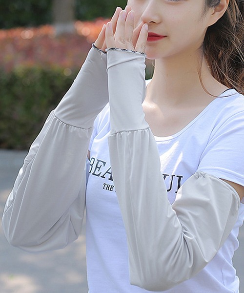 レディース ロング丈アームガード ロング丈アームカバー 8colors UV対策 お肌の大敵日差しからガード! ロング丈でUV対策!! UV cut 太陽の光から守ってくれる 日焼け対策アームカバー 屋外でのサイクリングや、運転、通勤通学など様々な場面で大活躍! Point.1 しっかり紫外線カット ロング丈アームカバー 8カラー展開のシンプルで使い勝手の良い色ばかり! 無地なので2つ持ちして、気分を変えてもgood Point.2 暑くても快適! 涼しい接触冷感 装着したとき冷たく、涼しくて快適! サラッとした生地感で、暑さも和らぐ。 - Detail - ●親指穴 親指穴まであって、手の甲までガードしてくれる。 ●腕周りストッパー 上腕周りにずれ防止をしてくれる ストッパー付き。 ●ゆとりあるデザイン 窮屈感が苦手な方や、 ゆったりと着用したいときに 嬉しいデザイン 【セット内容】 ・1点 ・アームカバー ●サイズ表をご確認の上、お間違いのないようご購入下さい。 ※サイズは平置きで測定しております。 サイズは、実寸サイズを測っているため多少誤差がでる場合があります。 製造工程の関係上、各採寸箇所実寸(平置き)より【約-3cm~+3cm】程度は 誤差の許容範囲とさせて頂いておりますので、予めご了承くださいませ。 ●商品・着用者によっては多少の誤差がある場合がございます。 ●生地の取り方により、柄の位置等写真と異なる場合がございます。 ご了承ください。