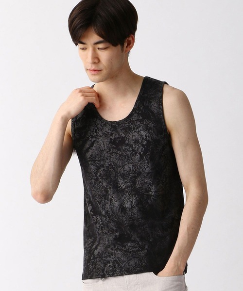 ボタニカル柄をメタリックなフォイルプリントで表現したデザイン性の高いタンクトップです。独特なムラ配色の箔シートを別注で作成し、カスレを効かせたオリジナルのボタニカル柄でプリントしています。※画像の商品はサンプルです。実際の商品とは仕様・加工・サイズ・素材が若干異なる場合がございます。