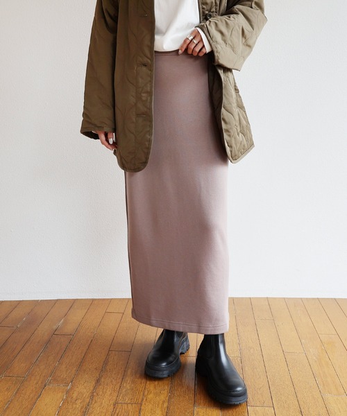 ふっくら柔らかな肌ざわりが心地よい、 当店人気の裏毛スウェットシリーズに ロングスカートが登場しました♪ より良い着心地を目指して素材を改良し、 ふっくらとした風合いに仕上げました。 リラックス感のあるマキシ丈。 ウエスト部分はリブ切替でカジュアルに仕上げ、 ゴム入りで楽ちんに♪ タイトすぎず、ユルすぎず、 絶妙なシルエットにこだわり、 大人が品よく着られる抜け感コーデに。 春夏はサンダル、秋冬はスニーカー等、 シューズ次第で季節を問わず使えるのもポイント! おうち時間やワンマイルウェアとしても最適な 楽ちんカジュアルアイテムです。 ※撮影時のライティング、ご覧になっているモニター・PC環境により 実際の商品と色味が異なって見える場合がございます。 ご了承の上お買い求め下さい。 素材: ポリエステル65% 綿35% 【リブ部分】 ポリエステル62% 綿33% ポリウレタン5% ≪備考≫ 伸縮性:あり 透け感:なし 生地の厚さ:やや厚手 肌ざわり:さらっとしている その他:裏毛スウェット 生産地:中国 洗濯機:可 ドライクリーニング:不可 ウェットクリーニング:可