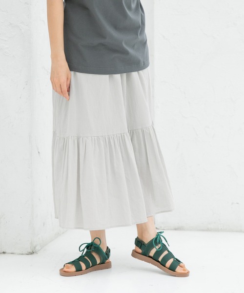 ラクチンに着られる夏の大人スカート夏に人気の楊柳コットン素材を使用した、軽やかなマキシスカート。風に揺れるフレアなシルエットに、ひざ下で切り替えをしてボリューム感をプラス。ウエストはリラックスして着られる後ろゴム仕様で、暑い日にもストレスのない着心地です。一枚でさらっと着られるのがうれしい裏地付き。着回しカラーのモノトーンと、夏気分を盛り上げるきれいカラーの4色展開です。※屋外の光や照明の当たり具合で、実際の商品の色味とカラー別画像の色味に違いが発生する場合がございます。 商品の色味はスタジオ撮影の詳細画像にてご確認ください。