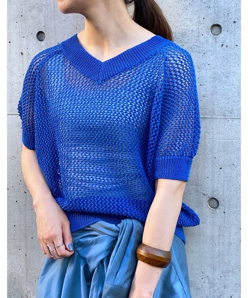 フィッシュネット編みのVネックプルオーバー●デザイン和紙を使用したザクザクした軽量の編地は吸水速乾性に優れ、涼しく着用いただけます。着るだけでリゾートムードを演出してくれるアイテム。インナーアイテムや素肌が透けて見え、奥行きや抜け感のあるコーディネートに仕上がるトレンドトップスです。女性らしく抜け感のあるVネックラインとリラクシーなサイズ感も魅力な一着。●おすすめコーディネートメッシュ編みからインナーのカラーを透けさせる遊びのあるレイヤードが今季らしくておすすめ。ノースリーブワンピースとの重ね着も素敵に決まります。●素材ポリエステル58% 分類外繊維(和紙)42%・通気性が良くドライな肌触りが魅力洗濯方法:手洗い透け感:あり裏地:なし伸縮性:ややあり生地の厚さ:普通光沢:なし【スタッフ着用コメント】《MEGUMI》身長:159cm/細身/普段サイズ:S/着用サイズ:Fサイズ感:シルエットは程よいゆとりがあるデザインです。素材感:ドライタッチで表面感のある編地が清涼感漂う一枚です。着心地:通気性も良くとても涼しいです。テイスト問わず幅広いコーデに取り入れられるのも嬉しいポイントです。《まゆ》身長:171cm/普通/普段サイズ:M/着用サイズ:Fサイズ感:ゆったりとしたシルエット。Vネックでデコルテも綺麗に見えます。素材感:吸水速乾性に優れた和紙を使用したニット。とても軽く涼しくです。着心地:リラクシーな着心地。透け感もあるのでインナーによって雰囲気も変えてお召し頂けます。《MEI》身長:161cm/普通/普段サイズ:M/着用サイズ:Fサイズ感:全体的にゆとりのあるサイズ感です。素材感:和紙を仕様したシャリ感のある素材感です。通気性が良く涼しく着ていただけます。着心地:非常に楽な着心地。パンツやスカートはもちろん、ワンピースとの合わせも素敵です。 ==============================【注意点】※画像の商品は光の照射や角度、お使いのモニター環境により、 実物と色味が異なる場合がございます。 あらかじめご了承下さいませ。==============================【お買い物をもっと便利に楽しく♪】『♡』をクリックでお気に入り登録・「商品のお気に入り登録」で・・・ラスト1点や再入荷の通知が届きます。登録して頂いた商品だけが対象となる、あなただけのタイムセールが開催されることも!・「ブランドのお気に入り登録」で・・・新商品や再入荷など、いち早くブランドのお得な情報を受け取ることができますので、ご登録をおすすめします! ==============================