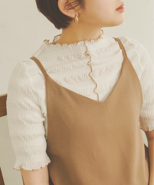 気分に合わせて旬コーデ♪ 透け感クリンクルブラウス。 クシャッとしたプリーツのようなクリンクル加工が 大人の抜け感を演出しつつ程よい透け感を演出します◎ ボトムの合わせ方によって色んな表情をみせてくれるアイテムで カジュアルからきれいめまで幅広くコーディネートにマッチします。 春夏にぴったりなニュアンスカラーの展開でご用意しております。 ■detail しわ加工(クリンクル加工)を施したシアーシャツ。 透け感のあるデザインでトレンド感をプラス。 インナーや色遣いや、レイヤードの仕方で雰囲気を変えて着用頂けます ■fabric エアリーな素材は生地の凹凸により肌への接地面が少なくなるため春夏にぴったりの素材。 …………………… 透け感:あり 厚さ:薄手 伸縮性:あり …………………… ■coordinate 淡いカラーは、パステルカラーとの相性抜群。 プリーツスカートとのコーデにぴったりです。 デニムに合わせて、さらっと着こなすのも素敵♪ ※ご注意※ ・屋外の光や照明の当たり具合で、実際の商品の色味とカラー別画像の色味に若干の違いが発生する場合がございます。 ・詳細画像と併せてご確認の上、ご注文いただきますようお願い致します。 ●お買い物をお得によりお楽しみいただく為に● ▼商品のお気に入り登録&ブランドお気に入り登録▼ がおすすめです! ♡をクリック 完売カラーの再入荷通知や、ラスト1点の通知、プライスダウンしたセール通知も受け取ることができます。 ブランドお気に入り登録もご一緒にお願い致します。 ※他のキャンペーンにより、期間中に価格が変動する場合があります。※セールは予告なく終了させていただく場合もあります。 #淡色#シアー#半袖トップス#パイピング#メロウ
