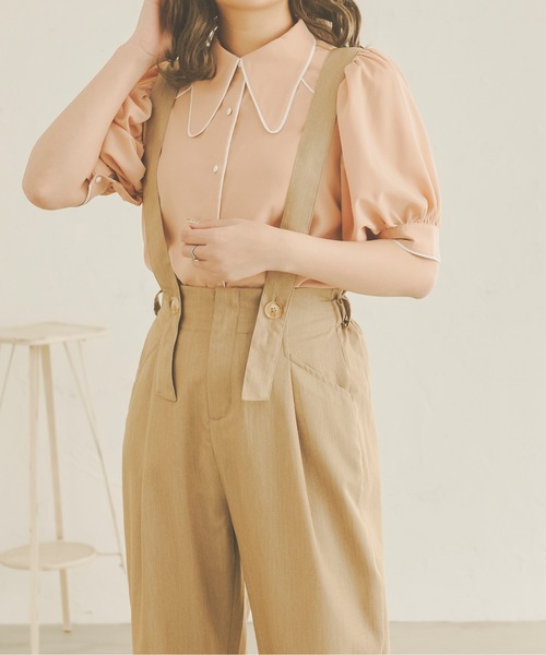 配色パイピングをあしらった、デザイン性の高さが魅力のブラウス 配色パイピングを施したデザインと ボリュームのあるバルーンスリーブやハリのある素材が女性らしさを演出。 ■point ・トレンドのビック襟 ・パステルカラーがかわいいフェミニンブラウス ・パフスリーブで華奢見え ■fabric ビックカラーでフェイスラインもすっきり魅せてくれる優れもの。 パインピングですっきりと甘めのデザインを引き締めます。 …………………… 透け感:あり 厚さ:薄手 伸縮性:なし …………………… ※詳しいお手入れ方法は商品タグをご参照ください。 ■coordinate デニムと合わせてカジュアルさをプラスしても◎ パンツにインしてすっきりとした印象に。 同系色のスカートと合わせれば淡色系コーデにまとめてくれる。 ※ご注意※ ・屋外の光や照明の当たり具合で、実際の商品の色味とカラー別画像の色味に若干の違いが発生する場合がございます。 ・詳細画像と併せてご確認の上、ご注文いただきますようお願い致します。 ●お買い物をお得によりお楽しみいただく為に● ▼商品のお気に入り登録&ブランドお気に入り登録▼ がおすすめです! ♡をクリック 完売カラーの再入荷通知や、ラスト1点の通知、プライスダウンしたセール通知も受け取ることができます。 ブランドお気に入り登録もご一緒にお願い致します。 ※他のキャンペーンにより、期間中に価格が変動する場合があります。※セールは予告なく終了させていただく場合もあります。
