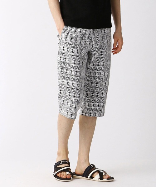カットソー素材のクロップドパンツです。ポケットの袋布をつるっとした肌触りのストレッチ裏地にする事で着心地をUP。股下を膝下丈に設定していますので、ロールアップして膝上丈へアレンジも楽しめます。生地には特徴的な5柄のダブルフェイスジャカードを使用。カラー91その他1、92その他2のオルテガ柄は黒糸と色糸のコントラストが柄に立体感を出しているのが特長。カラー93その他3、94その他4のボタニカル柄は細かなリーフ柄を表現した夏らしい柄です。カラー95その他5のクラック柄はひび割れたような柄を採用する事で鮮度を出しました。全素材、裏面が天竺編みになりますので、引っ掛かりのないサラッとした肌触りが特長です。※画像の商品はサンプルです。実際の商品とは仕様・加工・サイズ・素材が若干異なる場合がございます。