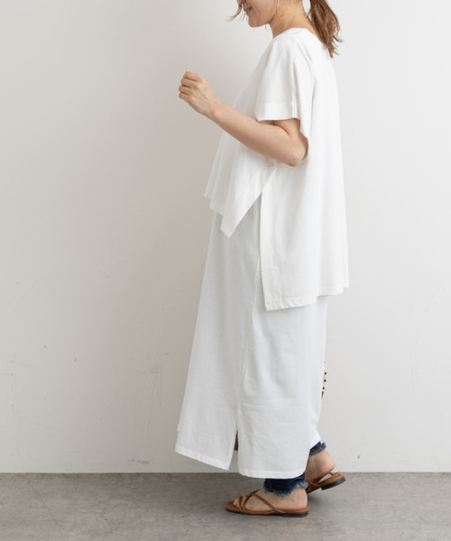 ピュアルセシン 2021 Spring collection 【with a Breeze】新しい価値観の生活の中でこそ、ピュアルらしさのモノづくりの持続とその中にも、エフォートレスな気分、「with a Breeze」風をまとい、丁寧な暮らしに寄り添える、洗練されたスタイリングの提案◇着回しが効く、セットワンピース◇トップスとワンピースがセットになったアイテム。それぞれで着用できるので、着回しがとても効きます。トップスは前後差のある丈で、お尻がしっかり隠れるゆったり感。ワンピースはシンプルなノースリーブなので、インナーワンピースとしてもお使いいただけます。程よく開いた首元と、シンプルなデザインで小物がとても映え、大人の高見えスタイルが叶います。・コットン100%の柔らかい生地・長さのしっかりあるワンピース・合わせる小物次第で様々なスタイリングが叶う・体型をカバーしてくれるゆったり感=============================透け感:白のみややあり裏地:なし伸縮性:あり光沢感:なし生地の厚さ:普通【スタッフコメント】年齢:20代前半/身長:157cm/普段着用サイズ:Mサイズサイズ感:全体的に余裕のあるサイズ感。締め付け感は全くございません。素材感:コットン100%の柔らかく、肌によく馴染む素材感。=============================インナーワンピース着丈=120cm胸囲=114cm※撮影場所やお使いのモニター環境により若干お色味が異なる場合がございます。特にロケの撮影では明るく見える傾向にございます。 ※予約商品はサンプルで撮影をしております。若干の仕様が変更になる場合がございますので予めご了承の上ご注文くださいますようお願いいたします。