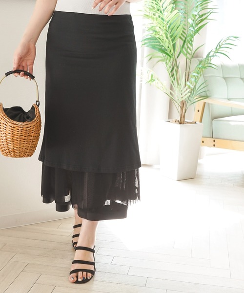 【商品紹介】 1枚で2パターンの着こなしが出来る! 贅沢チュールフレアスカート。 <表側:チュールフレアースカート> チュール3枚仕立てのボリューム感たっぷりなフレアースカート。 軽やかにふわ~んと揺れ動くシルエットをお楽しみ頂けます。 チュールの裾がクルンと折り返ったりしないよう、 裾にグログランテープを使用することで、よりシルエットを美しく魅せエレガント&高見え効果◎ 裾は裏地丈を短めにすることで、膝下から裾までの透け感が女性らしい印象に。 内側には夏にも涼しいカットソー素材を使用し通気性も抜群! <内側:カットソー素材のIラインシルエット> 裏返すとカットソー面が表になり綺麗めカジュアル印象に。 カットソー部分はIライン+裾チュール素材のドレープが裾から覗く、綺麗なマーメイドスカートシルエット。 ウエストは後ろがゴムになっているので楽ちんな着用感♡ お好みで2通りの着こなしをお楽しみください。 ---Designer’S POINT--- point1 ボリュームたっぷりチュール3枚仕立てのフレアー フレアー分量をたっぷりとり、 更にチュールを3枚重ねすることでふわ~んと揺れ動くシルエットが美しい。 チュールのシアー感が涼しげで女性らしい印象に。 point2 裾グログラン チュール素材の特徴でもある裾の巻き付きを グログランテープで押さえているので絡まず、 グログランが裾フレアーシルエットを美しく魅せエレガントさをプラス。 チュールから覗くシアー感が華奢魅せ効果も◎ point3 リバーシブルでマーメイドスカートに 綿タッチのカットソー生地でIラインシルエット。 裾からチュールが覗いて綺麗めカジュアル印象な、 マーメイドシルエットでもお召いただけます。 point4 高見えにこだわったウエスト ウエストベルトには、高密度サテンを使用。 INした時も美しい生地感◎ 後ろウエストはゴムで楽チン。 <ディティール> ・リバーシブルスカート ・チュール素材/フレアーシルエット (内側はカットソー素材/リバーシでの着用が可能) ・チュールを3枚重ねたデザイン ・裾グログラン ・ファスナー&ホックなし ・丈感/ロング程 (内側のカットソー素材はひざ丈程) ・ポケットなし 【マテリアル】 --Merit point-- #柔らかチュール #シアー素材 #ふんわり軽やか #内側カットソー素材 ※『ご自宅で手洗いOK』 <チュール素材> とても柔らかな質感のチュール素材。 肌なじみもよく、素肌に触れてもふんわり心地よい質感。 シアー感が涼しげ。 素材感 ・厚み/薄手 ・伸縮性/あり ・透け感/ほぼなし ・裏地/あり(チュールとカットソーのリバーシブル) 【お取り扱い上の御注意】 <お届け時のシワにつきまして> ページで着用している商品は撮影前に全てプレスをかけております。 その為お送りする商品は畳みジワや細かいシワがついている場合がございます。 ご了承下さいませ。 <色移り・色落ちについてのご注意点> この商品は摩擦(特に湿った状態での摩擦)や汗や雨などでぬれた時は他の衣料や下着に色が移る事がありますので、十分ご注意ください。 <お取り扱いご注意点> アイロンはあて布を使用して下さい。 洗濯により、多少の縮みが出る場合があります。 色物の場合は色移りすることがありますので、単独洗いして下さい。 つけ置き洗いはお避け下さい。 水洗い後は形を整えて陰干しして下さい。 引っかかりにご注意下さい。 過度な摩擦を受けた場合、淡色のベルトやバッグ、ブラウスなどに色移りすることがあります。 雨や汗で湿った状態では、特に起こりやすくなるのでご注意願います。 衣類に色が付着した場合には、速やかに染み抜き等の処置をして下さい。 この製品は、素材及びデザイン上、引っ掛けが生じやすいので、ご注意願います。 ●個々により多少異なります。 ●強度な力が加われば縫い目が開く等のトラブルが起きる可能性がございます。ご注意下さい。 ●雨や汗で濡れた時は他の衣類等に(特に白物)色移りする場合がありますので色製品には充分御注意下さい。 ●決して糸は切らないで下さい。穴あき、ほつれの原因になります。 ●染料や加工を加えた際の臭いが製品に付着している場合がございます。 臭いが気になる場合には、風通しの良い日陰の場所に干して頂けましたら幸いです。