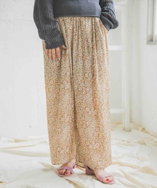 テロッとした薄手の生地で仕立てたサマーライクな印象のワイドパンツがNEW IN!ウエスト部分にプリーツギャザーを施したボリューム感のあるシルエットが可愛い1枚。デイリーにもルームウェアにも取り入れやすいイージー仕様も嬉しいポイント◎派手になりすぎない総柄デザインにも注目です。 ----------------------------- 《スタッフ着用コメント》 年齢 : 30代後半, 身長 : 155cm, 体型 : 普通/骨格ウェーブ パーソナルカラー : イエベ春 普段の着用サイズ : S, M 【着用カラー/サイズ】BLK/Free 【サイズ感】ウエストゴムでストレスなく着て頂けます。 【素材感】ポリエステル100%なので、シワになりにくく透け感もありません! 【その他】パンツは着心地も楽チンなので、お家でのリラックススタイルにもお出かけにもオススメです♪ ----------------------------- ※この商品は、水分や汗、摩擦(特に湿った状態での)などにより、色落ちや色移りすることがありますので、着用時・クリーニングの際は充分ご注意下さい。特に濡れたまま放置しますと、他のものに色移りしたり、色泣きすることがありますのでご注意ください。 ※直射日光や蛍光灯に長時間あたると変色したり、色褪せすることがありますのでご注意ください。 ※その他お取り扱いに関しましては、商品に付属のアテンションタグをご覧ください。 ※商品画像は、光の当たり具合やパソコンなどの閲覧環境により、実際の色味と異なって見える場合がございます。予めご了承ください。 ※商品の色味の目安は、商品単体の画像をご参照ください。 ▼お気に入り登録のおすすめ▼ お気に入り登録商品は、マイページにて現在の価格情報や在庫状況の確認が可能です。 お買い物リストの管理に是非ご利用下さい。 ----------------------------- 透け感:なし 伸縮性:ややあり 裏地:あり 光沢:ややあり ポケット:あり -----------------------------