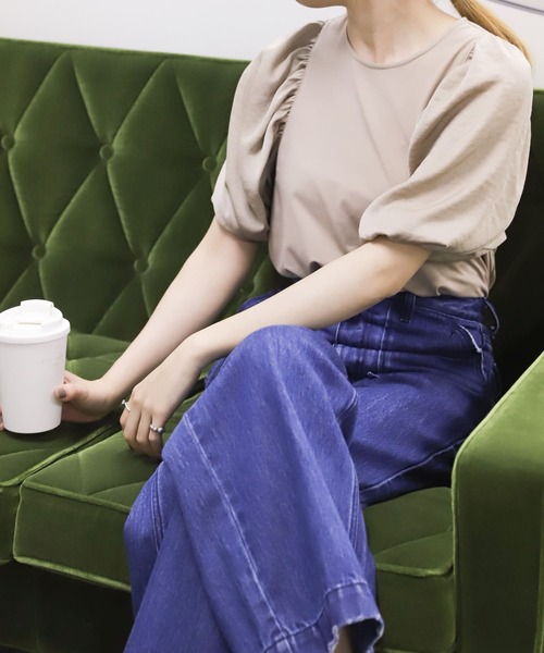 異素材ドッキングでトレンドライク 1枚で様になるボリュームスリーブ×異素材トップス ◯トレンドのボリュームスリーブ ◯異素材コンビで1枚で様になります ◯サラッとした素材感で着心地◎ styling 異素材ドッキングでトレンドライクな1枚!フレアシルエットのボディに、サテン素材のボリュームスリーブをドッキングしたカットソー。ふんわりとした袖が、女性らしさを引き立てます。コーディネートのアクセントにもぴったりで、フェミニンな着こなしが楽しめる1枚です。 material シルエット素材のボディとサテン素材の袖のドッキング。きれい目な印象のコンビです。 ※この商品(BEIGE)は、色の特性上、直射日光や蛍光灯等に長時間あてますと変色する可能性がありますのでご注意ください。 ※強い衝撃が加わりますと壊れやすいので注意して下さい ※その他お取り扱いに関しましては、商品に付属のアテンションタグをご覧ください。 ※商品画像は、光の当たり具合やパソコンなどの閲覧環境により、実際の色味と異なって見える場合がございます。予めご了承ください。 ※商品の色味の目安は、商品単体の画像をご参照ください。 ----------------------------- 透け感 : ややあり(OFF WHITEのみ) 伸縮性 : あり 裏地 : あり 光沢 : ややあり(袖部分のみ) ポケット : なし -----------------------------