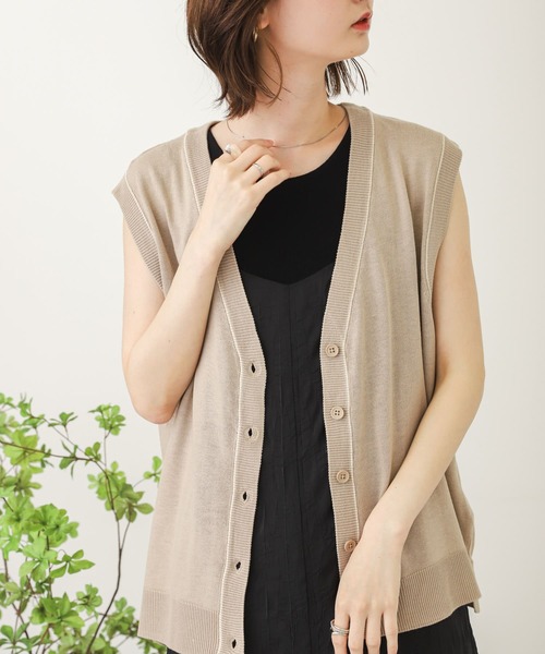 配色がポイントのニットベストです様々な合わせができる着回し力抜群のニットベストです◯AWでも人気だった配色アイテムをSS仕様に落とし込みました◯フロントボタンを開けて羽織るのも◎◯ゆるっとしたサイズ感で簡単におしゃれ見えstylingトレンドのティアードワンピースとのレイヤードスタイリングがおすすめです!カットソーやブラウスと合わせてももちろん◎です、ワッシャースカートやスラックスといったセンスオブプレイスの定番アイテムとも相性抜群です!◎※この商品は素材の特性上、着用の際はピリングが発生する場合があります。※ピリングは無理に引っ張って取ろうとせず、小さなハサミなどで丁寧に取り除いて下さい。※その他お取り扱いに関しましては、商品に付属のアテンションタグをご覧ください。※商品画像は、光の当たり具合やパソコンなどの閲覧環境により、実際の色味と異なって見える場合がございます。予めご了承ください。※商品の色味の目安は、商品単体の画像をご参照ください。▼お気に入り登録のおすすめ▼お気に入り登録商品は、マイページにて現在の価格情報や在庫状況の確認が可能です。お買い物リストの管理に是非ご利用下さい。-----------------------------透け感:なし伸縮性:ややあり裏地:なし光沢:なしポケット:なし-----------------------------