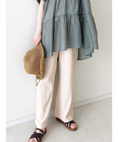 これからの時季にぴったり、涼しい着心地を叶える楊柳パンツ。ウエストゴムのほどよいフィット感で、締め付ける事なくストレスフリーに。足長効果アップのカギはワイドなシルエット。オン・オフ問わず様々なコーディネートで重宝してくれる、大人のベーシックな1着です。<コーディネート モデル:165cm>※着用画像は撮影環境により実物と色味に差異がある場合がございます。