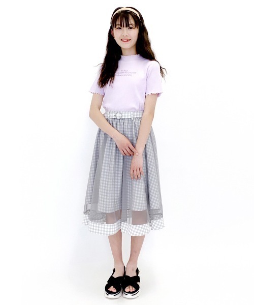 チェック柄の上にチュールを重ねたニュアンシーなスカートです。 裾部分はほんのり透けるので素肌とのコントラストを楽しめます。ふんわり広がるボリューミーなシルエットで、スタイルカバーを狙えるのもポイント。ウエストマークに便利なベルトをセットにしています。腰周りはアジャスターゴムでサイズ調節可能です。
