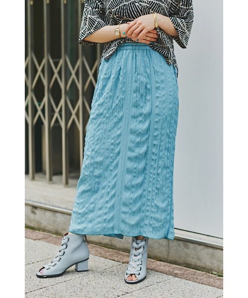 裾メローの微配色が可愛いワッシャースカート ・ワッシャーで軽い素材を使用 ・上品な印象のストレートシルエット・ウエストゴム仕様 ・薄手で軽い生地感 【スタッフレビュー】 全体にシワ加工を施し,動きのある立体的な表情が魅力のスカート。歩くたび揺れる,動きのあるシルエットはコーディネートに女性らしさをプラスしてくれます。サラリとした軽やかな素材感が夏らしいシーズンムードを演出。ウエストはドロスト仕様で調節可能なのでイージーな履き心地です。