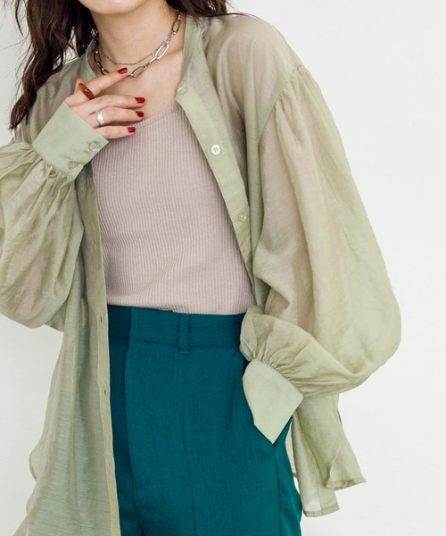 透明感のある羽織アイテム これ一枚で一気に透明感のあるルックに仕上げてくれるバンドカラーシャツの登場です。ボリュームをもたせた袖のシルエットや、裾をラウンドカットにすることでダブクロらしい柔らかいシルエットに仕上げました。落ち着いた透明感のカラー展開で、素材、カラー共に春夏を先取りできるアイテム。ちょっとした羽織りにも役立つアイテムは一枚持っていれば困りません。 スタイリング 程よい透け感がありノースリーブなどにサラッと羽織るだけ気取りすぎないナチュラルテイストなスタイリングの完成です。程よい肌見せが出来るので真夏でも着用可能。ロンTやリブニットなど上から羽織れば通年通して楽しんでいただけます。 ※商品の色はimageの着用写真ではなく、商品写真をご参照ください。 -------------------- 裏地:なし 透け感:あり 厚さ:薄め 伸縮性:なし -------------------- 【お買いものにおすすめの便利機能!】 ★商品のお気に入り登録 完売カラーの再入荷の時や、ラスト1点の時、セールになった時にお知らせします。 ★ブランドのお気に入り登録 商品や再入荷、セール情報など、いち早くブランドのお得な情報を受け取ることができます。 ぜひご活用ください!