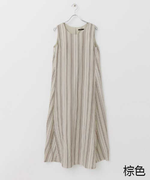 【亞麻質料與多臂織紋,打造出獨特長洋裝】多臂直條織紋,較一般印花設計更有深度,自然散發高級感。不會過寬的傘狀剪裁,側邊剪接位置調整在正面,更顯飄逸迷人。背面抽褶縫設計也是亮點。◆STYLE搭配編織包、寬簷帽等小物,享受時尚樂趣。單穿就很有型的大人風格亞麻洋裝。※本商品使用麻料,布料表面有看似線結、織紋瑕疵情形,此為麻素材特性,並非瑕疵,敬請理解。※商品照片可能因打光、電腦等顯示器不同,與實品顏色有所差異,請以實際顏色為準。-----------------------------透膚感:無彈性:無裏布:無光澤感:無口袋:有-----------------------------