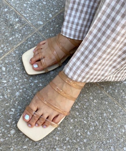 【今季旬の透け感を、足元から演出するPVCストラップとクリアヒール】 旬なスタイリングを足元から演出してくれるミュールサンダル。 ほんのり透けた素肌を感じる大人カジュアルな一足。 PVCストラップが女性らしさを引き立たせ、シンプルながらも存在感のある1足に。 大人っぽく夏らしい足元を楽しめるサンダルです。 つま先はスクエアトゥにし、旬のシルエットを演出。 今年らしいバランスに仕上げました。 クリアヒールは楽にお召し頂けるローヒールなので長時間のお出掛けの際も〇 今季トレンドのロングスカートやワイドパンツにも合わせやすいのでお勧めです。 ※掲載画像(商品、モデル着用とも)につきまして、撮影環境やお客様の閲覧されますパソコンや携帯電話キャリアによって、実際の商品とは多少異なった色に見える場合があります。 また表示のサイズ感も実物とは若干異なる場合もございますので、予めご了承ください。 ※タグ・バーコードのついたシールには、サイトのご案内と異なるカラー名が記載されていることもございます。ご了承ください。 - - - - - - - - - - - - - - - - - - - - - - - - - - - - 【「お気に入り登録」でお得な情報が届きます】 ・「商品のお気に入り登録」で再入荷通知、ラスト1点の通知、セール通知などを受け取ることができます。 ・「ブランドのお気に入り登録」で新商品、人気アイテムの再入荷など、お得な情報を受け取ることができます。 - - - - - - - - - - - - - - - - - - - - - - - - - - - -