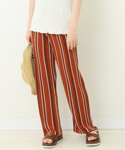 さらりとした手触りでシャリ感のある麻タッチのストレートパンツ。ドライタッチで涼やかな着心地です。裏地がついているので安心して着用できます。タテのラインを強調したストライプが、脚をスッキリとみせ、脚の細見え効果が期待!ウエスト部分はゴム仕様になっているのでは着心地もよく、ストレスフリー。シンプルな着こなしになりがちな春と夏に目を惹きます。これからの季節、ストレスなく快適に過ごす事が出来ます。シンプルなデザインで、どんなトップスとも◎コーデも幅広く楽しめる1枚です。【LM2-00378D】麻タッチストライプ チャイナ釦 2WAYプルオーバーとセットアップで合わせるのもおススメです。※屋外の光や照明の当たり具合、パソコンなどの閲覧環境によって実際の色味と異なって見える場合がございます。予めご了承ください。