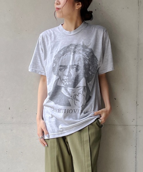 人気のベートーベンTシャツにプリント違いの新作が入荷しました! Beethovenがオーバープリントされた、センスとユーモアを感じる一枚。 背中に大きく配されたアメカジの定番エアフォースのロゴが目を惹くデザインです。 ・古着の風合いと相まった染込みプリントが、こなれ感をプラス ・ヴィンテージ好きであれば1度は目にしたことのある60年代の『Beethoven』デザイン ・ゆったりめのシルエットで、ラフに着用できる ・柔らかい肌触りで、着心地も抜群 ・一枚でインパクトがあり、コーデのポイントに◎ ※撮影場所やお使いのモニター環境により若干お色味が異なる場合がございます。 特にロケの撮影では明るく見える傾向にございます。 ※商品はサンプルで撮影をしております。若干の仕様が変更になる場合がございますので予めご了承の上ご注文くださいますようお願いいたします。 ▼商品のお気に入り登録 完売カラーの再入荷通知や、ラスト1点の通知、セールの通知も受け取ることができます。 ▼ブランドのお気に入り登録 新商品や再入荷など、いち早くブランドのお得な情報を受け取ることができます。
