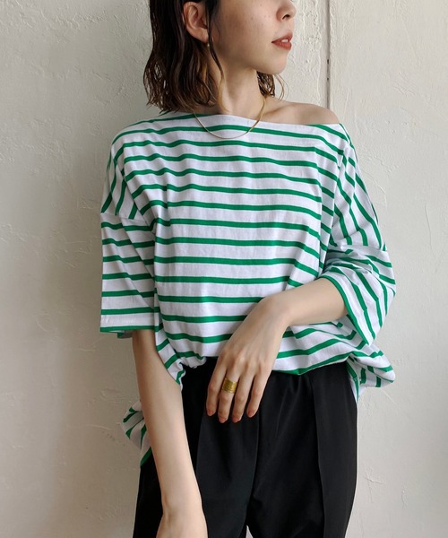 ラフな雰囲気漂うボーダーTシャツ ワイドな身幅感がゆるっとラフなスタイリングに。 柔らかく手触りのよい生地感で夏も快適に過ごせます。 ・女性らしさが垣間見えるボートネック ・片方の肩を落として着るのもおすすめ ・抜け感漂うスタイリングが完成 ・スカートやストレートパンツはフロントをインしてすっきり着るのがおすすめ ・スキニーやテーパードなど細身のパンツはアウトで着ても◎ ▼手洗い可能 ※撮影場所やお使いのモニター環境により若干お色味が異なる場合がございます。 特にロケの撮影では明るく見える傾向にございます。 ※商品はサンプルで撮影をしております。若干の仕様が変更になる場合がございますので予めご了承の上ご注文くださいますようお願いいたします。 ▼商品のお気に入り登録 完売カラーの再入荷通知や、ラスト1点の通知、セールの通知も受け取ることができます。 ▼ブランドのお気に入り登録 新商品や再入荷など、いち早くブランドのお得な情報を受け取ることができます。