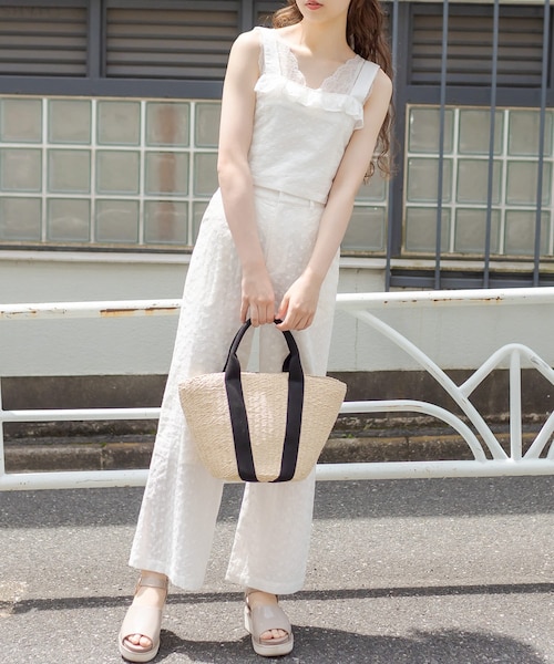 発売するたび人気のセットアップアイテム ビスチェ×ワイドパンツのセットアップアイテムがWEBだけで限定発売! *前フリルデザインのシンプルシルエットのビスチェ ・肩のストラップはボタンホールが2つあるので長さ調節が可能です。・後ろはたくさんのシャーリングゴムが入っているので、ストレスフリーな着心地も魅力の一つ。 *すっきりラインのワイドパンツ ・すっきりと見えるシルエットは、細見え効果抜群です! ・ウエスト後ろがゴムになっていて、着心地抜群なアイテム。 ・太すぎないワイドデザインになっているのでリラックスムードで動きやすさも抜群です! ■スタイリング ・同系色の開襟シャツ(品番:1212100404)も販売してますので、セットアップスタイルが断然おすすめ♪ ・Tシャツやブラウスと合わせられ、さまざまなコーディネートに合わせられます。 ・厚底サンダルはもちろん、今季はカジュアルなコードサンダルやスニーカー合わせもトレンドライク。 ・ロングボトムが苦手な方には同シリーズのビスチェ×ミニスカパンセット(品番:1279100604)もおすすめです。 -----------------------------裏地:あり 光沢感:なし 透け感:ややあり(オフホワイトのみ) 伸縮性:ビスチェ:後ろシャーリングあり パンツ:ウエストシャーリングあり 生地の厚さ:やや薄手 -----------------------------model:165cm 着用サイズ:FREE 【刺繍】※洗濯や着用中の摩擦や汗・雨などで、色落ち・色移りする可能性があります。※濡れたまま放置しないでください。※他のものと一緒に洗うのは、できるだけお避け下さい。※刺繍部分の引っ掛けには十分注意してください。※刺繍部分への直接アイロンはお避け下さい。☆お気に入り登録のおすすめ【気になるアイテムを登録】ハートをクリックしてお気に入りに登録すると完売カラーの再入荷やラスト1点の通知、セールの通知を受けとることができます。【ブランドを登録】♡お気に入りブランドに追加をプッシュして頂くと新作入荷や再入荷、セール通知など、いち早くブランドの情報を受けとることができます。是非ご利用下さい♪※ご覧のモニター環境や撮影環境により実際の商品と多少色味が異なって見える場合がございます。 ご理解の程よろしくお願いいたします。