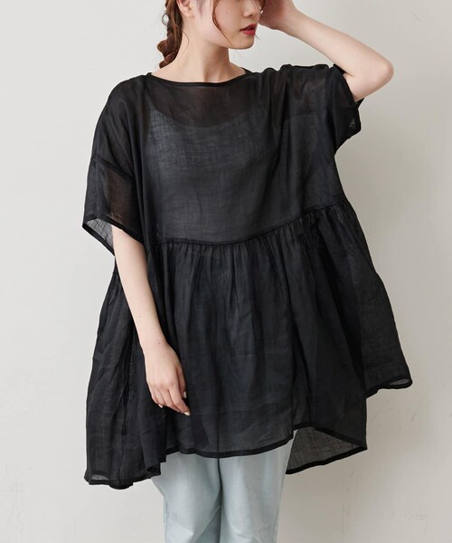 ピュアルセシン 2021 Spring collection 【with a Breeze】 新しい価値観の生活の中でこそ、ピュアルらしさのモノづくりの持続とその中にも、エフォートレスな気分、「with a Breeze」風をまとい、丁寧な暮らしに寄り添える、洗練されたスタイリングの提案 ◇程よいシアーでサラッと着れる大人チュニック◇綺麗に見える程よいシアーと麻100%の生地が涼しげな大人チュニック。シンプルなデザインのため、小物合わせが映え、コーディネートをワンランクアップしてくれるアイテムです。ウエスト切り替えからフワッと広がるシルエットで、女性らしい柔らかさを演出。全体的にゆったりした身幅のため、しっかり体型をカバーしつつストレスフリーな着心地です。 ・夏に嬉しい麻100%・お尻をすっぽり隠してくれるチュニック丈・シャリっとした生地で清涼感たっぷり・綺麗に見えるカラー展開===============================透け感:あり裏地:なし伸縮性:なし光沢感:あり生地の厚さ:薄め【スタッフコメント】年齢:20代前半/身長:157cm/普段着用サイズ:Mサイズサイズ感:全体的にゆとりのあるサイズ感。首元、袖口ともに余裕があるので、通気性も◎素材感:麻100%で少しシャリ感のある素材。軽やかで着やすい1枚。===============================※撮影場所やお使いのモニター環境により若干お色味が異なる場合がございます。特にロケの撮影では明るく見える傾向にございます。※予約商品はサンプルで撮影をしております。若干の仕様が変更になる場合がございますので予めご了承の上ご注文くださいますようお願いいたします。