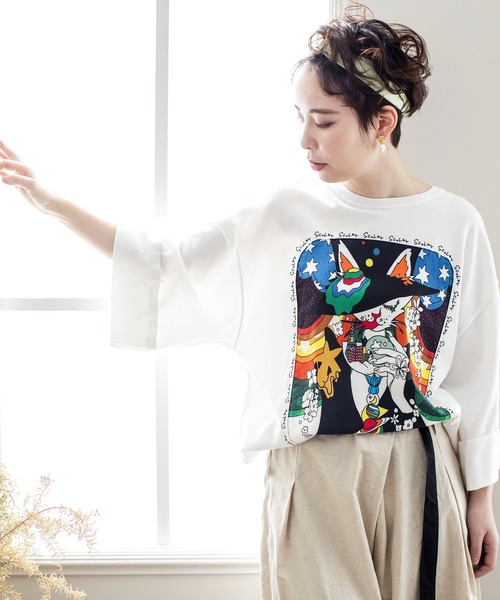 + ScoLar 商品 + 独特なタッチとパキッとメリハリのある色使いで描かれたネコの姿がスタイリッシュ! インパクトのあるイラストがアップリケになったBIG Tシャツです🎩🐱 虹色のカーテンの幕が上がり、連なる惑星を手に目を伏せるネコ紳士の姿が印象的🪐 オーバーサイズでリラックス感のある着心地、ロールアップデザインの袖は肘丈まで長く ゆったりとラフな着こなしが楽しめる一枚✨ 綿100%の肌に優しいさらりとした手触りも好印象💖 ■スタイリングitemはコチラ⇒【112672】 ●model:373 155㎝ ●model着用:01(オフホワイト) ※ やや透け感あり ※ アップリケ使用 取り扱いのご注意: ※この製品は摩擦や水濡れにより色落ちにすることがありますのでご注意ください。 ※この製品は生地独特な風合いを出すために、製品加工してあります。(製品は1点、1点多少表情が違います)