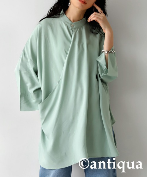 モード感ある立体デザインが目を惹く。 大人カシュクールシャツ。 カシュクールデザインが特徴的な、女性らしさ感じる大人っぽシャツ。 モード感ある立体デザインが体のラインを拾わず、ゆるっと美落ち感を生み出してくれます。 シンプルだけどデザイン性が高いから、着るだけで主役級の簡単にお洒落さんにしてくれる頼れる一着。 ≪DETAIL≫ ・煌めくアクセントになるシェルボタン。 ・広めのアーム幅で抜け感あるスリット入り! ・裾ラウンドデザインに、少し前後差。 ≪FABRIC≫ ・滑らかで落ち感綺麗な生地は、レーヨン混の上質な素材を採用! ・静電気がおこりにくく、熱に強い性質があり、化学繊維の中に最も吸湿性と放湿性が高いレーヨンを使用。 ・ポリエステルを混紡することで耐久性を上げました。 ・さらっと滑らか、美落ち感を生み出す極上の素材なんです! ※ボタンは天然素材の為、一つ一つの色の違いや欠けているものが見られます。ご了承の上、お買い求めくださいませ。 ※透け感のある生地を使用しておりますのでインナーをご着用ください。 ≪COLOR≫ スモークピンク・ミント・オフホワイト・ブラック の4色展開! ≪SIZE≫ FREE の1サイズ展開! ------------------------- 【着用感想】 伸縮性→伸びない 透け感→少し透ける 裏地→なし 肌触り→チクチクしない ポケット→なし ▼Sスタッフのサイズ感想 身長:152㎝ 体重:42㎏ アームホール→ゆったり スリット(最短位置)→ヒップ真ん中 全体の着丈(最短位置)→太もも 身幅→ゆったり ▼Mスタッフのサイズ感想 身長:158㎝ 体重:51㎏ アームホール→ゆったり スリット(最短位置)→ヒップ真ん中 全体の着丈(最短位置)→太もも 身幅→ゆったり ▼Lスタッフのサイズ感想 身長:164㎝ 体重:60㎏ アームホール→ゆったり スリット(最短位置)→ヒップ上 全体の着丈(最短位置)→太もも 身幅→ゆったり ------------------------- 【♡マークを押して、お気に入り登録を!】 『ラスト1点通知』、『再入荷通知』、『値下げ通知』など、お得な情報を受け取ることができます!! 気になったアイテムは今すぐ ”お気に入り登録” をお忘れなく★★