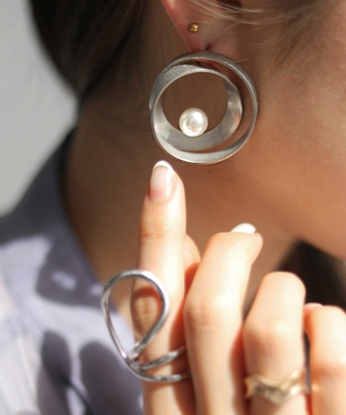 ボリュームたっぷり2連フープ。モード×エレガントの個性派。 2連フープピアスの登場です。 太めのフープを2連に輪違いさせた立体感の中に、大人の女性らしさを 忘れないパール使いが絶妙なピアス。 着けてみればマットな仕上がりがコーデを邪魔せず、華やかさをプラスしてくれる。 スタイルによってモードにもエレガントにも演出してくれます。 [アレルギー対応のニッケルフリー] 金属アレルギーの原因のトップとされるのがニッケル。 だけど加工がしやすいから多くのアクセサリーに使用されています。 ニッケルフリーとはニッケルという金属などで引き起こるアレルギーを 「防ぐことを目的」にニッケルをほぼ含まずにニッケルフリーメッキを使用しているもの。 ニッケルによる金属アレルギーをお持ちの方でも安心してお使い頂きやすくなっています! ※こちらのアクセサリーはアレルギーを起こしにくい素材を一部使用しておりますが アレルギー反応に関しましては個人差がございますので全ての方に適合するものではございません。 ※ニッケルフリー素材は性質上変色する場合がございます。 変色による返品・交換は受付かねます為予めご了承の上お買い求めくださいませ。