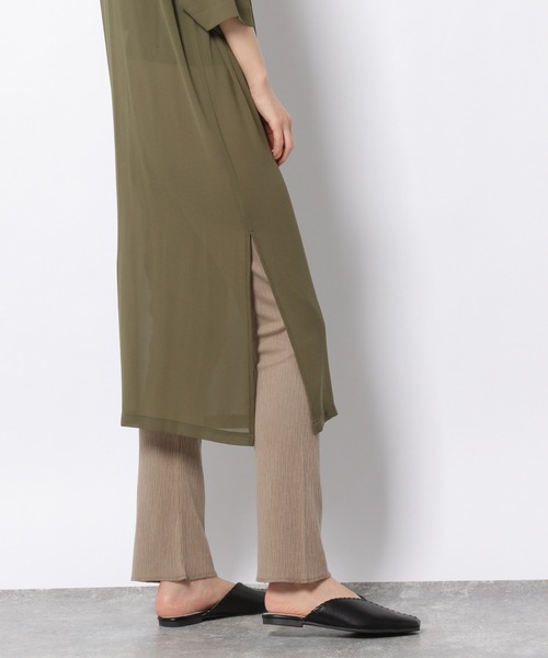 ゆるやかなフレアシルエットで、脚長効果バツグンのカットソーレギンスパンツ。 細やかな凹凸感は、コーディネートに馴染みやすく、レイヤードにぴったり。 使いやすいベーシックなカラーバリエーションです、 【素材】 コットン×ポリエステル×ポリウレタンのやわらかなカットソー素材。 繊細な凹凸感があり、独特の表情です。 【スタイリング】 ワンピースや長めのチュニックなど、レイヤードスタイルにお使いいただけます。