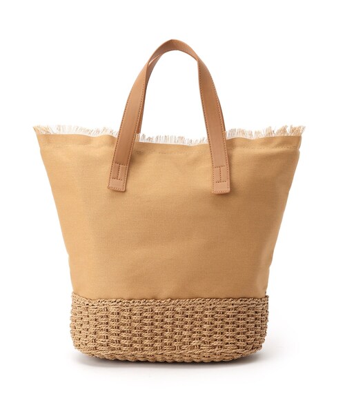 【デザイン】上部はコットンキャンバス地、下部を夏らしいペーパー素材で切り替えたコンビトートバッグ。開口部はカットオフディテールを採用し、こなれ感をプラスした1品です。長財布や500mlペットボトル、お出掛けに必要なものがすっぽりと収まるサイズ感で使い勝手が良いのも◎※ポケット数:内側×2店舗へのお問い合わせ商品番号:F97-02916●製品寸法:00:高さ30cm 幅(上部)38cm 幅(下部)27cm マチ15.5cm 持ち手上がり15cm備考:重量:約280g
