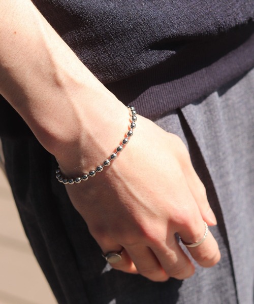 腕元にアクセントをプラス【デザイン・仕様】シンプルながらボール状のチェーンが存在感を醸し出す一連ブレスレット。ブランドロゴ入りのリングに反対側のピンを通すだけの着用しやすい仕様。腕時計やお持ちのアクセサリーとも重ね付けしやすいデザインのため、ご自身用としてはもちろん贈り物にもおすすめ。【素材】美しい輝きのあるシルバーカラーが特徴的な真鍮素材を使用。スタイリングが華やかになるひと品です。*光沢有り