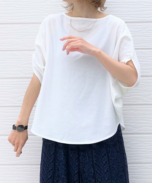 アムンゼン生地を使用したTシャツです。 アムンゼン生地とは、梨の皮のような不規則な細かい凹凸感のあるざらざらした素材感が特長的な素材です。 光沢はありませんが、ドライタッチでシャリ感のあるしやかな風合いです。 透けがほとんどなく、二の腕も隠れるシルエットなので露出が気になる方も着やすいアイテムです。 《インフォメーション》 ◆商品のお気に入り登録 完売していても再入荷時に再入荷通知を受け取ることができますので、是非ご登録ください。 ◆ブランドのお気に入り登録 新商品や再入荷などの情報を受け取ることができますので、是非ご登録ください。
