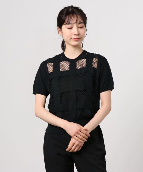 【A PUPIL(アピューピル)】2010年に、日本でのブランドを本格的にスタート。素材、手描きのプリント柄、縫製にこだわり、長く着る事が出来、時代が変わっても古くならない冒険性のあるデザインが基本コンセプトのブランド “ ア ピューピル “フロントに使用された粗めのメッシュが、シーズンライクなスタイリングをアシストするトップス。伸縮性のあるニット素材を使用しているから、着心地も抜群。シンプルなカラーリングで、コーディネートに取り入れやすいのも魅力の1つです。※画像と柄の位置が異なる場合がございます、ご了承下さい。