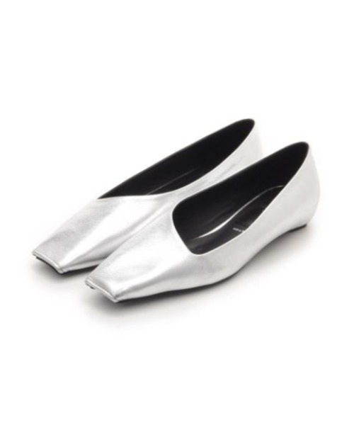 品良いメタリックカラーで視線を集めるシューズ。アッパーのカッティングにスクエアトゥが、大人の足元にスッと溶け込みます。フラットで歩きやすく、スタイリングのワンポイントとしてオススメ。