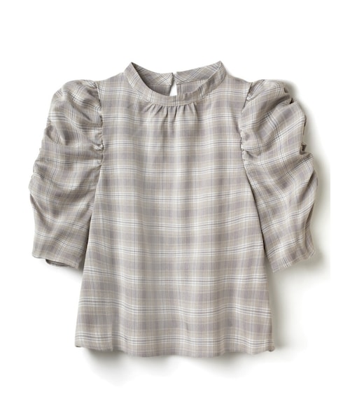 レトロなチェック柄で大人フェミニンな雰囲気が漂うブラウス。 ギャザーの寄ったスリーブでほっそりとした腕に。 ふんわりしたシルエットは女らしさが備わったイメージを持たせる。 ネックラインに施したギャザーが顔まわりに華やかなアクセントをもたらす。 ★裁断の関係で、柄の出方が写真と多少異なる場合があります。