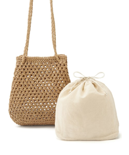 編みデザインがシーズンムードを高める。 ペーパー素材が涼しい印象を与える。 巾着付きで中身が見える心配なくお洒落を演出。 デイリーからレジャーシーンまで幅広く活用できるアイテム。 ★天然素材・手作りの為、カラー・形・サイズが、写真・サイズ表示と多少異なる場合があります。 ★巾着付きです。