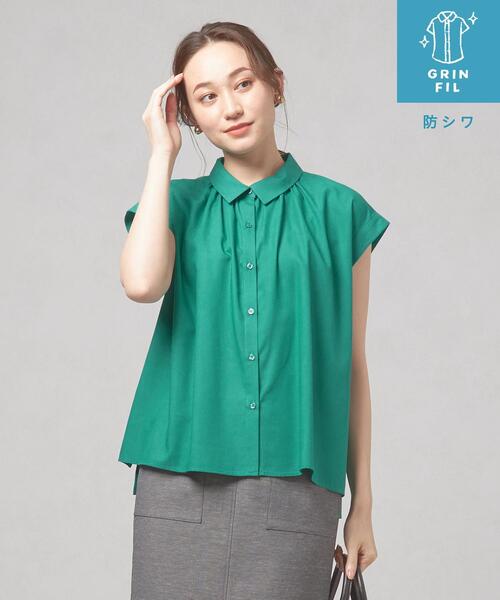 ソフトな風合いが爽やかな印象のレーヨン/ポリエステル素材でお作りしたシャツブラウス。「GRIN FIL(グリンフィル)」というお洗濯後のシワが付きにくい糸を使用した素材で、これからの季節に嬉しいイージーケアアイテム。コンパクトなシャツカラーや程よく肩をホールドする切替デザインのスリーブなど、ラフなディテールを取り入れつつ柔らかな素材を使いエレガントさもプラスしました。ネック回りのギャザーが奥行きのある表情を魅せ、スクエアシルエットのゆったりとしたサイズ感がリラックスムードも演出。前後差をつけた着丈やサイドスリットが、イン・アウトどちらの着こなしも叶え、マキシスカートやワイドパンツから、デニムやスキニーパンツまで幅広いボトムと相性の良い一枚です。◇GRIN FIL(グリンフィル)◇グリンフィルは耐洗濯性に優れた特殊な糸です。洗濯後のしわが付きにくく、日々のお手入れが簡単です。____________________透け感:ホワイトややあり生地の伸び:なし裏地:なしケア方法:洗濯機洗い可____________________<closet story>フレンチシックとブリットモダンがテーマのオリジナル企画レーベル。若々しさと可愛らしさをもったエレガントなスタイルをベースに、都会的で今日を生きる女性が「自分らしさ」を大切にしたいときに揃えたいアイテムを提案します。店舗へお問い合わせの際は、全国のTHE STATION STORE各店舗まで下記の品番をお申し付け下さい。品番:6916-699-0378