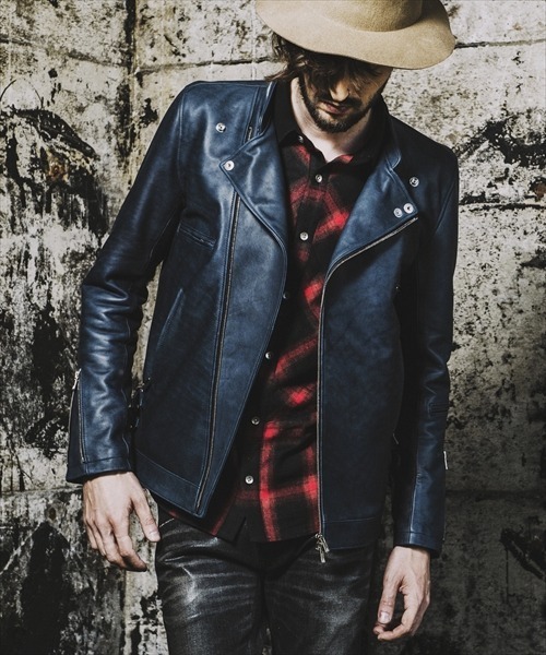 2021 AUTUMN NO ID. COLLECTION フランス産のホースレザーを使ったWライダースジャケット。ソフトに鞣し通常よりも倍の量のオイルを入れて染色したオイルドレザーを採用。光沢の強いレザーとは異なり半艶の光沢がハードな印象のライダースに落ち着いた雰囲気を与えてくれる。ホースレザーは運動量が多い為、脂肪分が少なく薄く柔らかい革にもかかわらず強度の高い革質を持ち合わせておりライダースに適した革となっている。毛穴が少なく綺麗な銀面もホースレザーの特徴。染色時に出る放射状の染めムラなど天然物のならではのアジを感じさせてくれる点も長年使うこと考慮して愛着の湧くポイント。本作はUKレザーを代表するルイスレザーのライトニング、ドミネーターからオマージュを受けたデザイン。そこにNO ID.らしさを落とし込みファスナーにはYKK社のハイエンドモデル「EXCELLA」を採用。襟裏には定番のドラッグポケットを配置。更に本作の最大の見所は襟元に付けたファスナーを外す事で襟が外れノーカラーのライダースに変化する2way仕様にした拘りのディテール。決して安くはないレザーをこの1着があれば襟付きも襟無しも堪能できる今までには無い新しいアプローチを取り入れている。申し分のないハイクオリティな革質を纏い気分に応じてアレンジも楽しめる特別なライダースが完成した。
