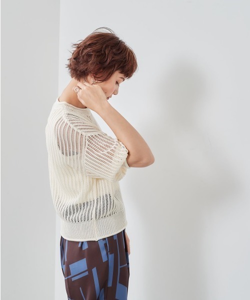 抜け感のある透かし編みニットで涼しげな夏コーデに。 合わせるインナーによって印象が変わり、 着回しにもぴったりなアイテムです◎ cepoデニムと合わせてシンプルに着用していただくのがおすすめです。