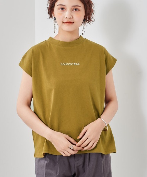 シンプルなロゴTシャツで大人カジュアルコーデに。 フレンチスリーブなので二の腕をカバーする効果も◎ ボトムスを選ばず、デイリーに活躍するアイテムです!