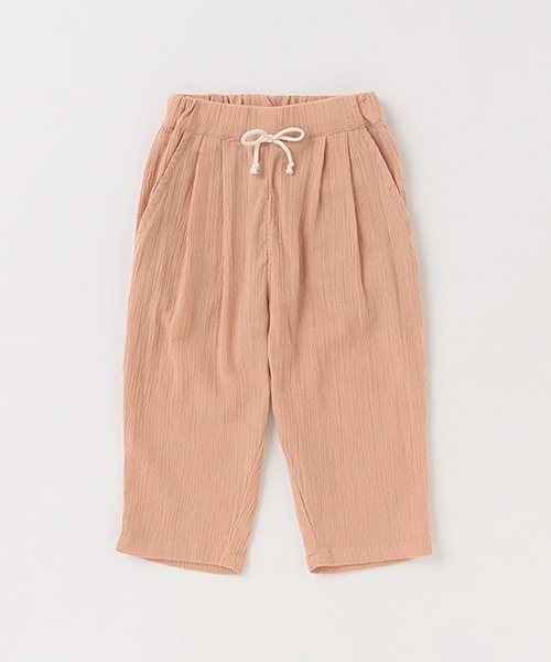 風が通り抜ける心地良いはき心地が魅力のリラックスパンツです。 布帛の綿楊柳素材でべたつきにくく、空気をまとうような涼しげな着用感に♪ 軽快な脚さばきを叶える9分丈も魅力です。ウエストにゴムの替え口をセット。内側にはお名前を記入できるタグつきです。両側にポケットを備えています。 ※夏に適したアイテムです