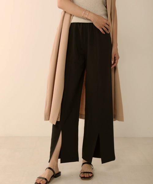 軽やかなフロントスリットが特徴の洗練ボトム ■POINT リラクシーなワイドシルエットですが、スリットが抜け感を与えてくれるので軽やかな印象に。 ウエストゴムなのでストレスフリーにご着用いただけます。 ラクに履けるイージーパンツ ■FABRIC 上品な印象を与えるきれいめな生地を使用しています。 ポリエステル素材なのでお手入れも簡単です。 ■COORDINATE ラフにTシャツやタイトなリブトップスなどと合わせても、スリットで抜け感をプラスできます。 シアー素材のブラウスや羽織との相性もばつぐんです◎ ★商品のお気に入り登録 登録すると、完売しても再入荷時に通知を受け取ることができます。 ほかにもお得な特典があるかもしれません♪ ★ブランドのお気に入り登録 新商品や再入荷などの情報を受け取ることができますので、是非ご登録ください♪