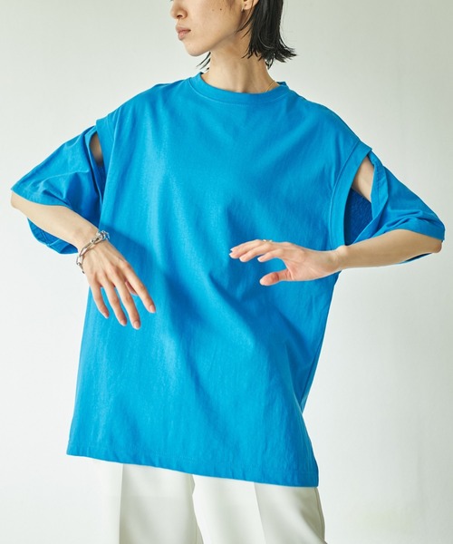 - VACANCY SPRING COLLECTION - ◆大人気のシルエットがTシャツになって新登場! 【特徴】 VACANCYでご好評頂いている マルチ2wayスリーブデザインをあしらった Tシャツが新登場◎ ゆったりとしたシルエットが 涼しげでラフに着られて、 スリーブデザインが アクセントになるお洒落Tシャツ。 スリットから腕を通すと、 ノースリーブとしても着まわせます♩ ベーシックなカラーから目を惹くカラーまで 4色展開のご用意で 男女問わずマルチに着ていただける シルエットで仕上げました◎ 【スタイリングポイント】 Tシャツ1枚で存在感があるデザインなので シンプルにデニム合わせやハーフパンツ合わせで トップスを引き立たせるのもオススメ◎ トレンドの柄パンツや キャミワンピースなどの下に合わせても トレンドライクな印象に♩ 様々なコーディネートにお使い頂けます◎ ・・・・・・・・・・・・ 透け感:なし 裏地:なし 伸縮性:なし 光沢感:なし 生地の厚さ:普通 ・・・・・・・・・・・・ 【お買い物をお楽しみいただく為に】 ▼お気に入り登録をオススメ致します! ♡をクリックして下さい。 ・《商品のお気に入り登録》で再入荷通知や、ラスト1点の通知、セールの際の通知も受け取ることができます。 ・《ブランドのお気に入り登録》で新作商品や再入荷など、お得な情報を受け取ることができます! 【ATTENTION】 ※撮影場所やお使いのモニター環境により若干お色味が異なる場合がございます。 ※製品によっては染料の特性上、湿った状態や汗をかいた状態での長時間の放置、または摩擦により、他のものへ色移りする恐れがありますので、着用時にはご注意下さい。 ※お洗濯は洗濯ネットを使用し、他のものとの混合洗いはお避け下さい。色落ちや色移りの原因となります。 タンブラー乾燥はお避け下さい。 ※風通しがよく、湿気の少ない日の当たらない場所で保管して下さい。 ※また製品加工上、お手元に届く際に匂いが生じる場合がありますが、 ご使用を続けていく事により匂いは軽減されます。
