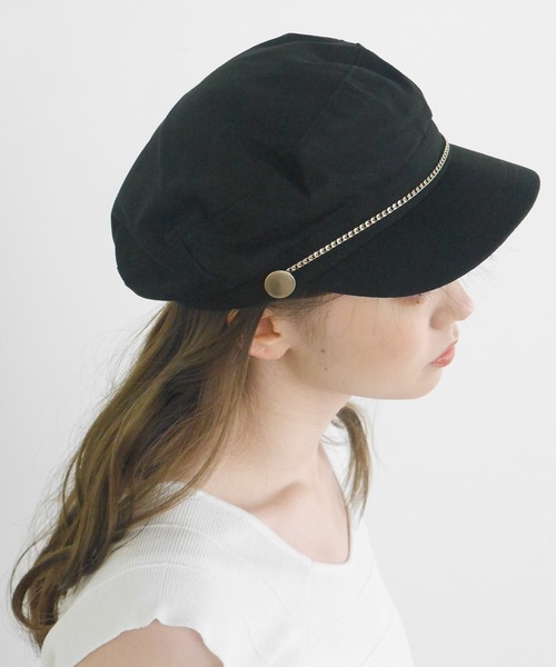 細身のチェーンがエレガントに映えるマリンキャスケット。 ゴールドのメタル使いがリッチなアクセントをプラス◎ カジュアルから綺麗めな着こなしにと、様々なコーディネートのアクセント使いにも活躍してくれるアイテムです。