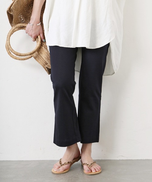 【2021 SS】JOURNAL STANDARD大人の方にもおすすめなカットソーパンツが登場!柔らかく伸びの良いポンチ素材を使用したカットソーパンツ。ウエストもゴム仕様で抜群の穿き心地で普段使い可能な優秀パンツです!丈をやや短めに設定して足首を出して穿けるので全体的にすっきり見えるのがポイント◎サンダル、スニーカーとの相性はもちろん、カラーはブラック・ネイビー展開できちんと感もあるのでヒールでの合わせできれいめスタイルも叶うマルチアイテムです。同シリーズの品番:21070400810020《WEB限定》オーガニックコットンポンチプルオーバーとのセットアップでの着こなしもおススメです。******************透け感:なし裏地:なし伸縮性:あり光沢感:なし生地の厚さ:普通**********************【スタッフ着用コメント】《スタッフO》年齢:30代前半/身長:158cm/体型:普通/普段サイズ:M/着用サイズ:38サイズ感:フィット感があります。ウエストはゴムなのでストレスフリーです。素材感:柔らかい素材です。着心地:伸縮性があるので、着心地抜群です。**********************※取り扱いについては、商品についている品質表示でご確認ください。※店頭及び屋外での撮影画像は、光の当たり具合で色味が違って見える場合があります。商品の色味はスタジオ撮影の画像をご参照下さい。洗濯:手洗い可ウエストゴム有りです。